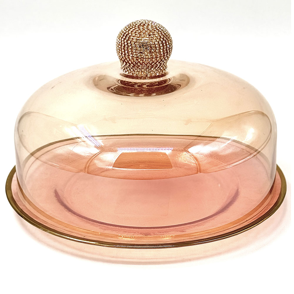 Enhance your beautiful home decor with the Pearl Haus Amber Cake Stand with Diamonds and Low Base. This stylish cake stand is perfect for luxury kitchen decor enthusiasts. Specifications: 26.5*18cm.