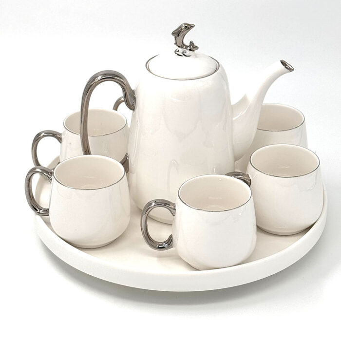 White Silver Tea Set – A stunning bone china tea set with silver detailing, perfect for elegant and luxurious tea moments.
